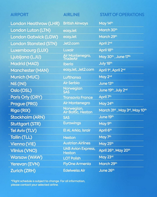 Both Podgorica Airport (TGD) and Tivat Airport (TIV) will offer a mix of year-round and seasonal flights, including many new low-cost routes and several new airline entries.