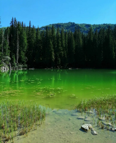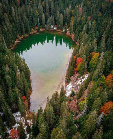 The deepest point of this lake is only 7.7 meters deep. The water in the lake is extremely cold due to the accumulation of the lake through melting snow as well as two nearby springs.
