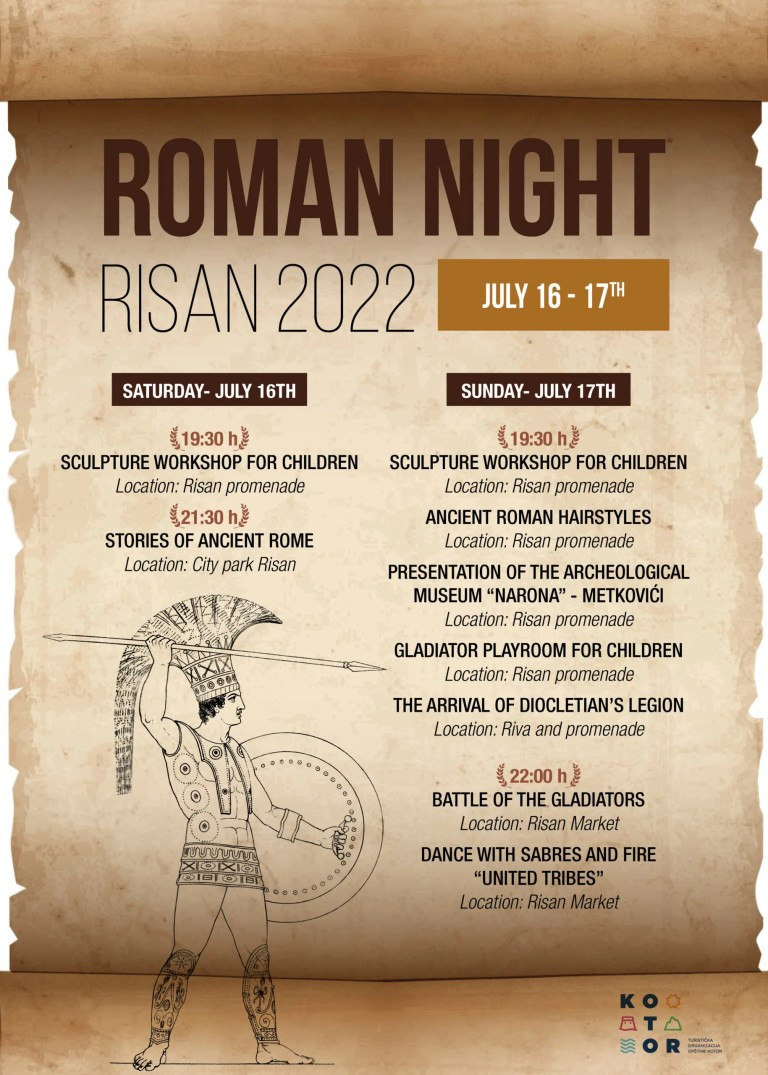 The Roman Night event aims to bring Kotor's cultural heritage closer to the local population and tourists, with the emphasis on children, through quite a few entertainment and educational workshops and activities. The event will take place at different locations in Risan, on July 16 and 17.