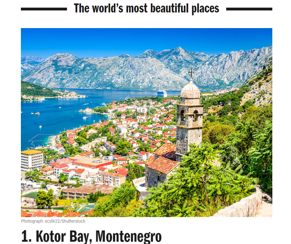 One of the correspondents of the portal www.timeout.com, Paul Stafford, included Kotor as the first in the top 30 world locations